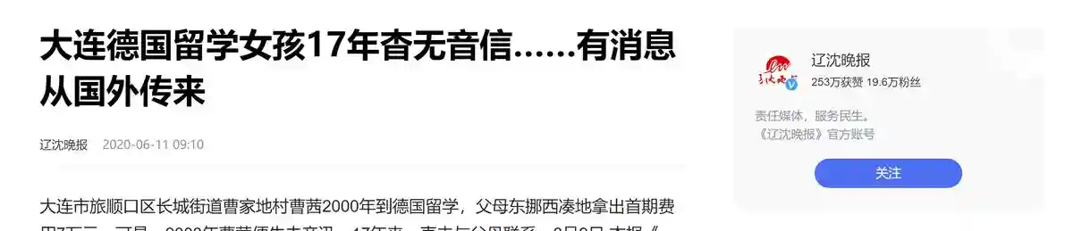 了解曹肇刚夫妇的事情,不管是报社还是德国华侨都自发帮他们寻找曹茜的下落,但一直都没有确切的消息,只知道曹茜可能成为了德国一所大学的终身教授。