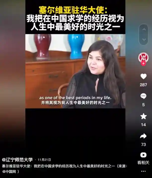 2024年11月21日,辽宁师范大学在抖音中发布了塞尔维亚驻华大使的采访细节。她着重表示在中国留学的经历,是人生中最美好的时光之一。