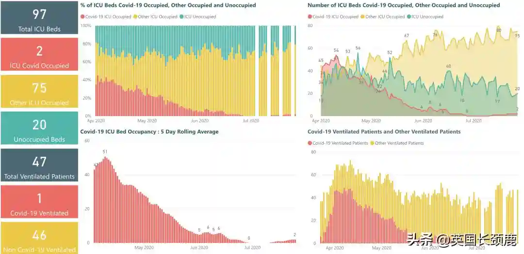 北爱尔兰地区7月27日数据:住院的确诊新冠患者共6人(-1),已出院的确诊新冠患者1,498人(+5),治愈率目前为99.1%。重症ICU疑似/确诊新冠患2人(=),空余的重症ICU床位20张(+1)。