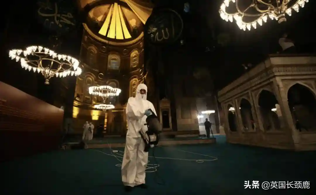 7月26日(周日),土耳其伊斯坦布尔的圣索菲亚大教堂TheHagiaSophia重新开幕,这是86年以来的首次重新向大众开放——在当天早上消毒人员全部喷洒消毒剂清理过后,大量的朝圣者涌入清真寺进行朝拜。