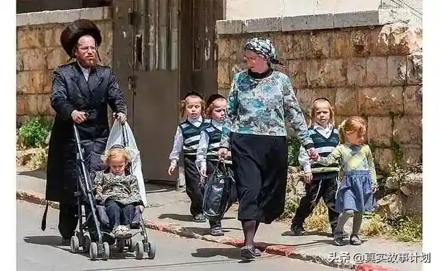 在“人均三胎”的以色列,有一支堪称生育战斗机的生力军——哈雷迪(极端正统派犹太教)。哈雷迪信奉《圣经》中“生养众多”的训诫,反对堕胎,也拒绝避孕。,平均每个哈雷迪家庭有七个孩子,多的能有十个到十五个。如果你走在以色列的大街上,会发现哈雷迪很好辨认:男性只穿黑色和白色的装束,男性蓄胡子,两鬓留着长长的小辫子;已婚女性则剃掉头发,戴着假发或头巾,穿着遮挡全身的朴素衣服。