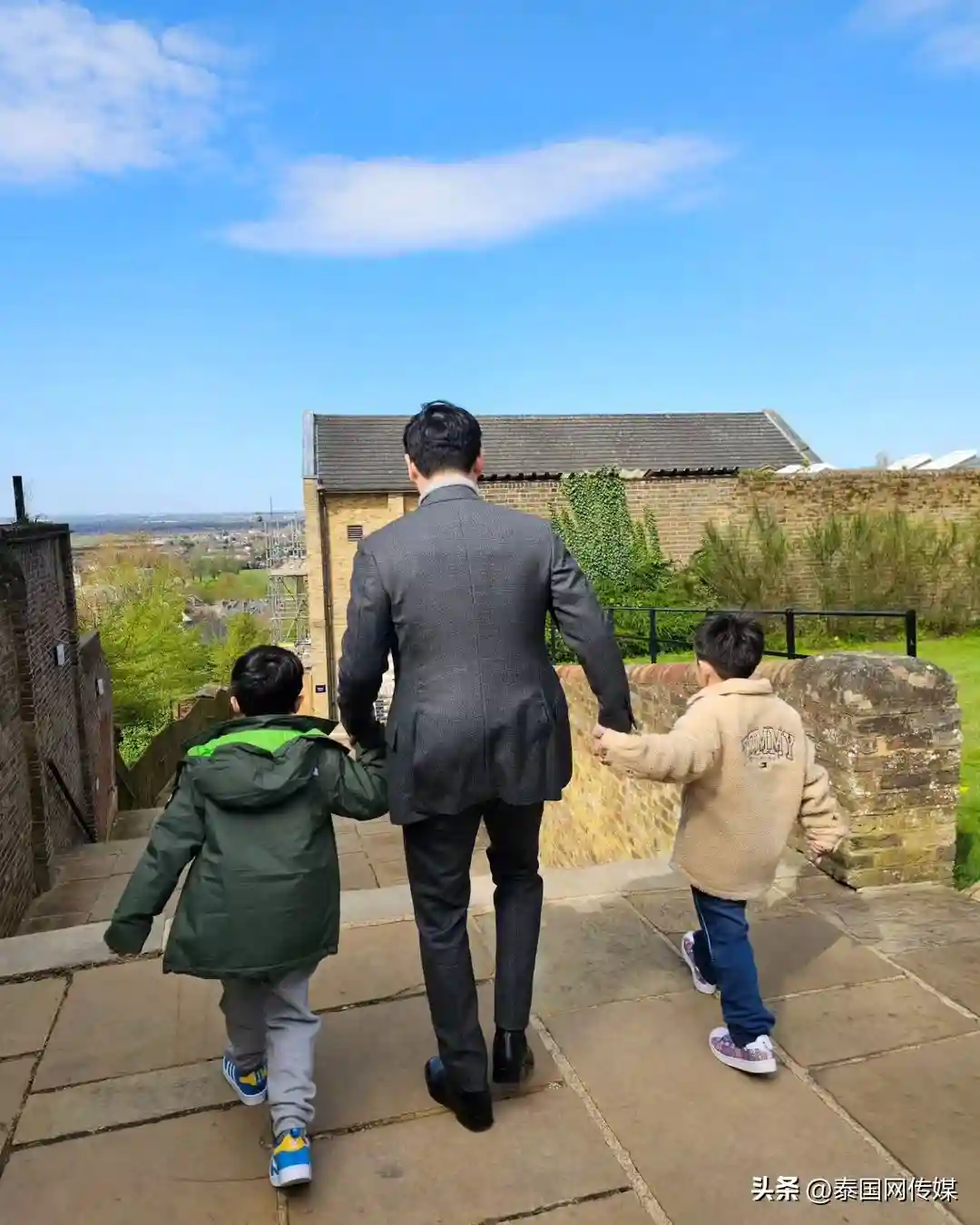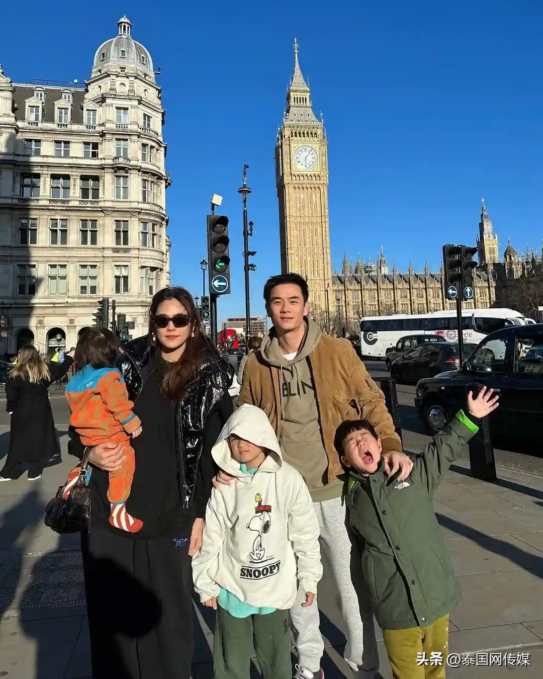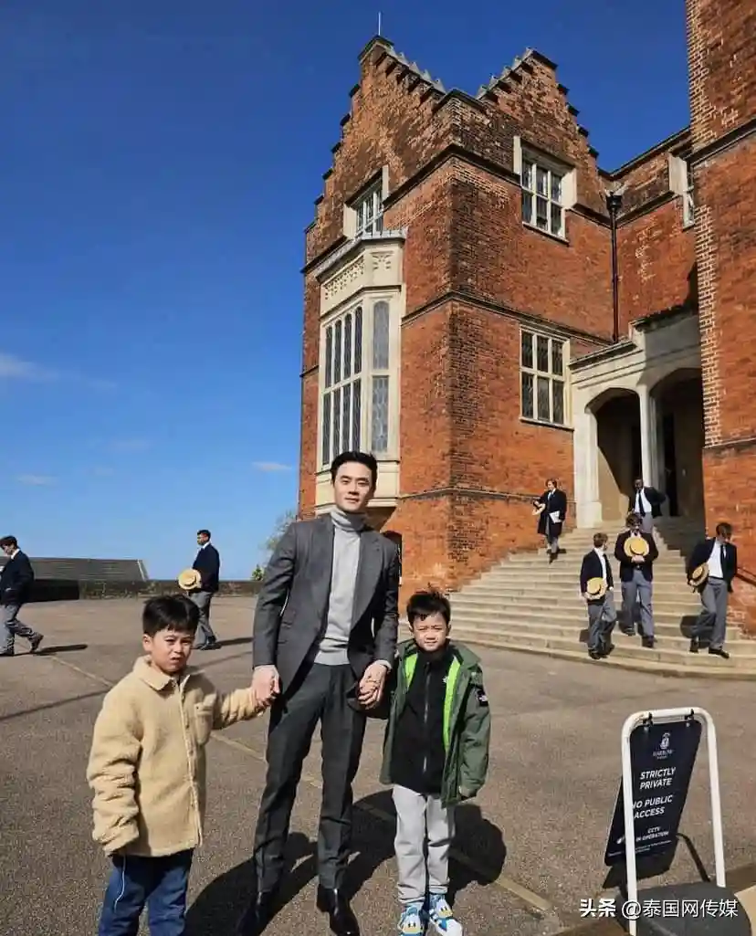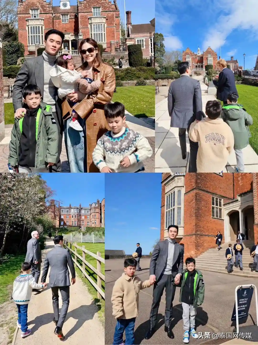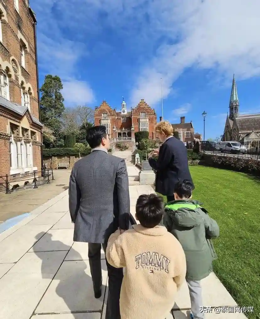 泰星Chompoo一家人英国度假 为双胞胎儿子择校