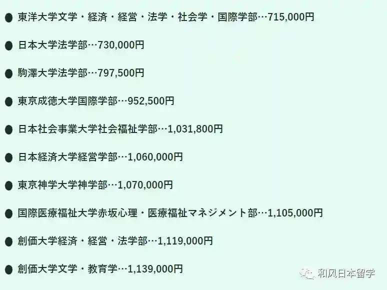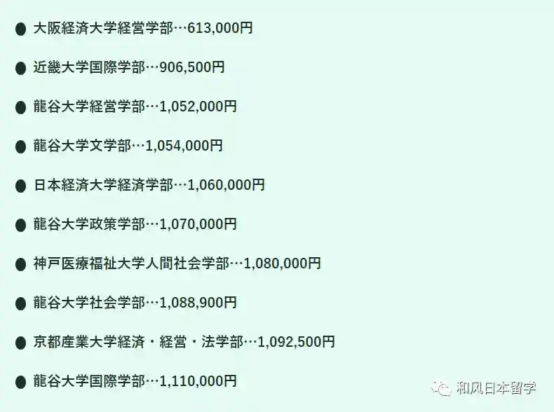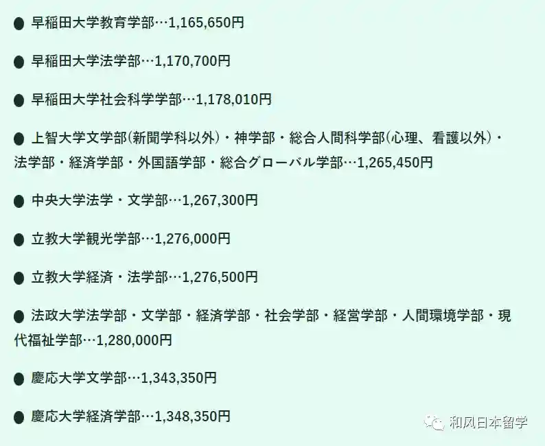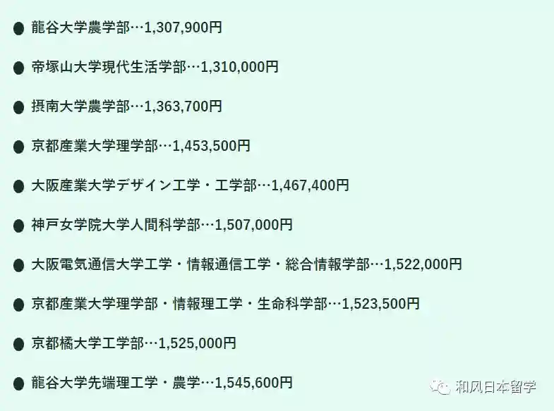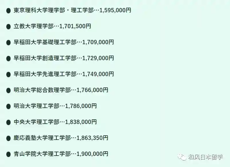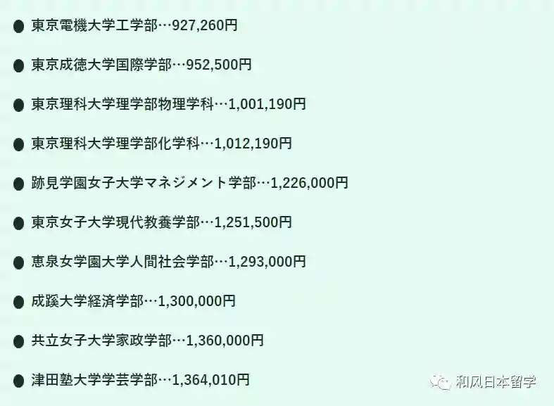 因为日本国公立大学的学费比较统一,初年度约为80万日元,所以不在此次的榜单内。