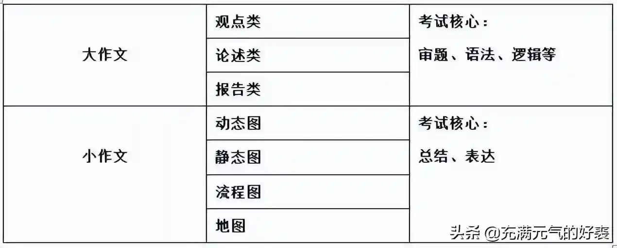 小作文只有四类,动态图,静态图,流程图,地图。