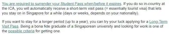 期间可找新加坡移民局拿白卡(DECard),没找到工作的话需要申请一年的长期访问签证(LTVP),之后根据自身情况选择各类工作签(EP、WP或SP)。