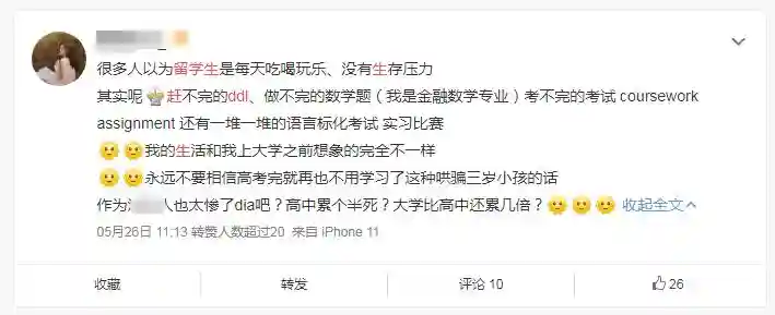 不是所有留学生都是无忧无虑的富二代,而即使是富二代,也有各种final、ddl、due在后面追着跑……