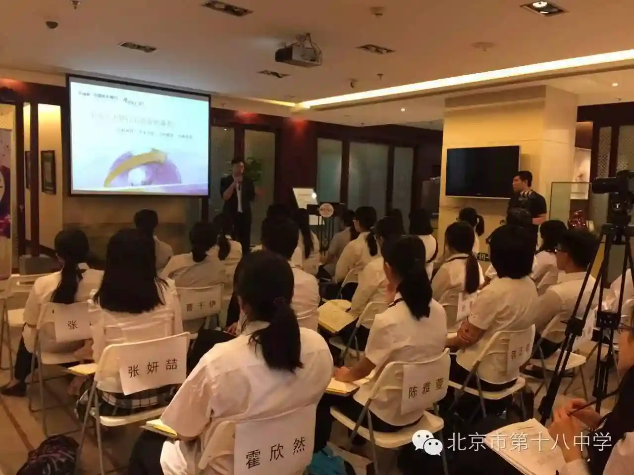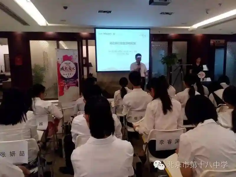 为了帮助我校中学生更直接充分地认识了解社会,为他们及早进行人生规划及职业设计提供有力依据,让他们把所学知识用于实践,北京市第十八中学组织学生参加了光大银行主办的阳光菁英实习活动。23名高一学生通过了银行面试,被正式录取为光大阳光菁英项目的学员。