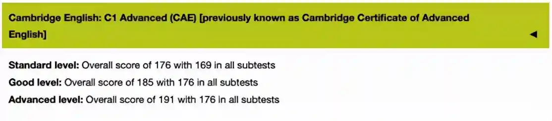 简单一点来记的话,CAE大概等于雅思的6.5~7.5,CPE等于雅思8分以上。同时在这些等级当中,还会以GradeA/B/C来细分不同的分数阶级。