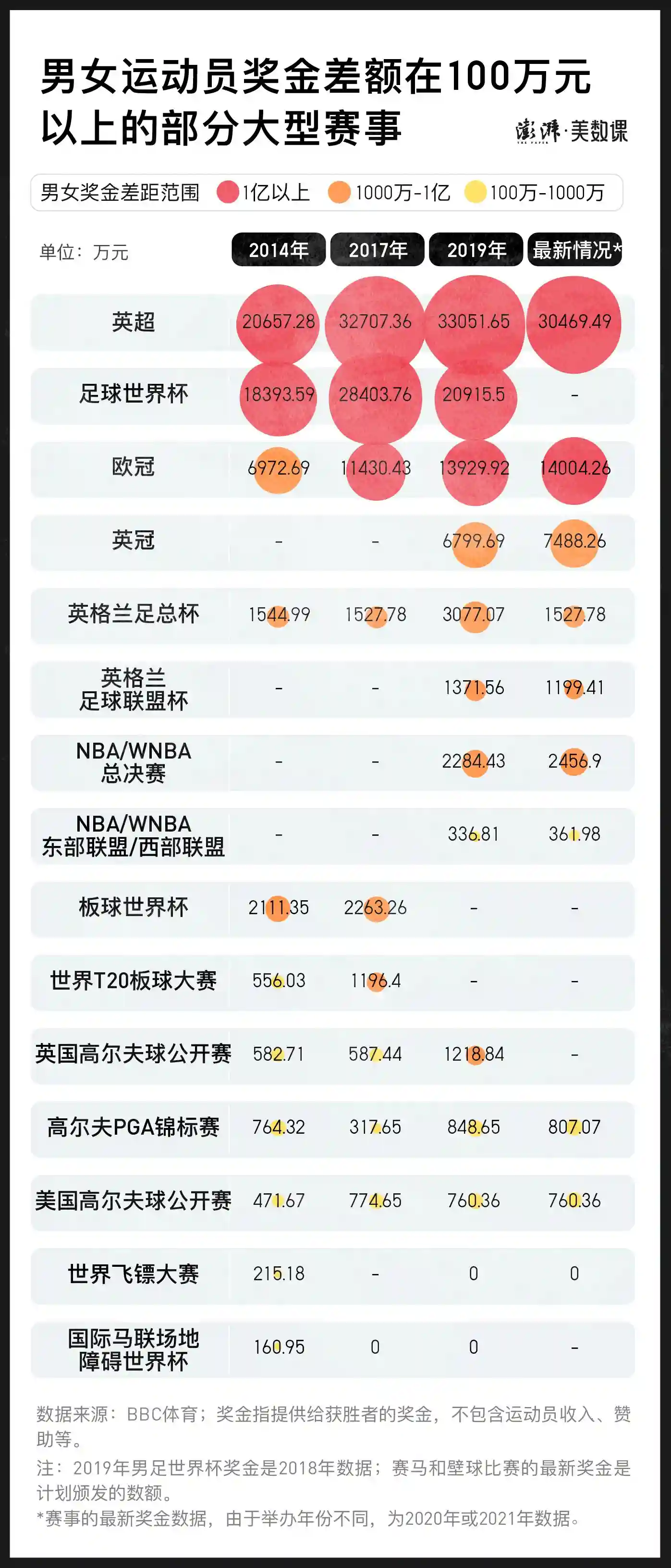 全球赛事奖金对比:体育界“性别之争”远没有结束