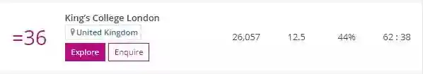 站在英国男女比例最不均匀首位的是:伦敦国王学院。KCL整所学校的女生VS男生比例为:62:38。女生人数为16155,比男生(9902)多了6253人。
