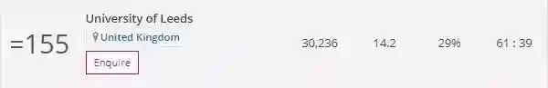 利兹大学的女生与男生比例为:61:39。女生人数为:18444,比男生(11792)多了6852人。