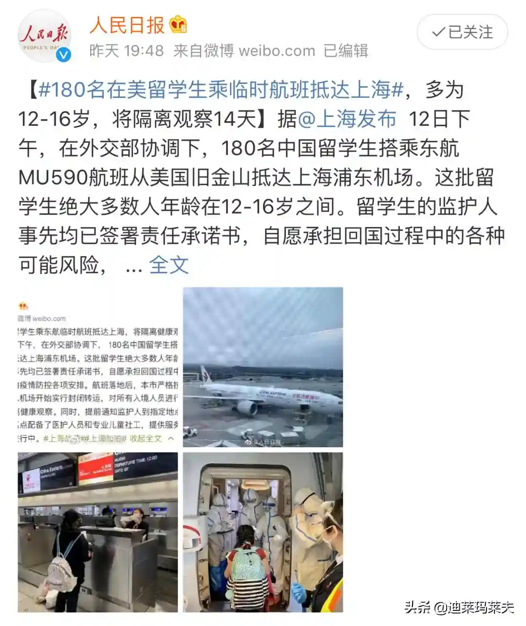 小R一行留学生落地后不久,等媒体就报道了他们平安回国的消息。