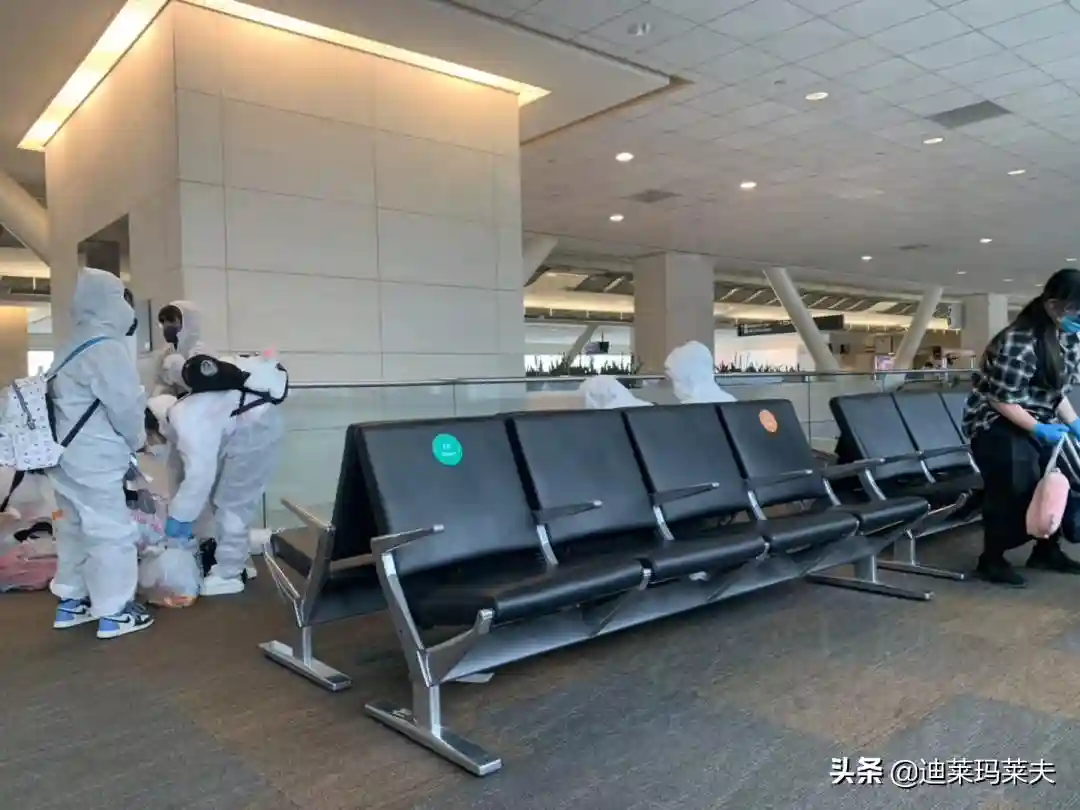 由于机场实在是太空了,原本需要三个小时才能完成的登记流程,今天只花了半小时就到了候机室。在这里,小R发现大家的防疫意识都特别强,几乎有四分之三的留学生都穿上了防护服。