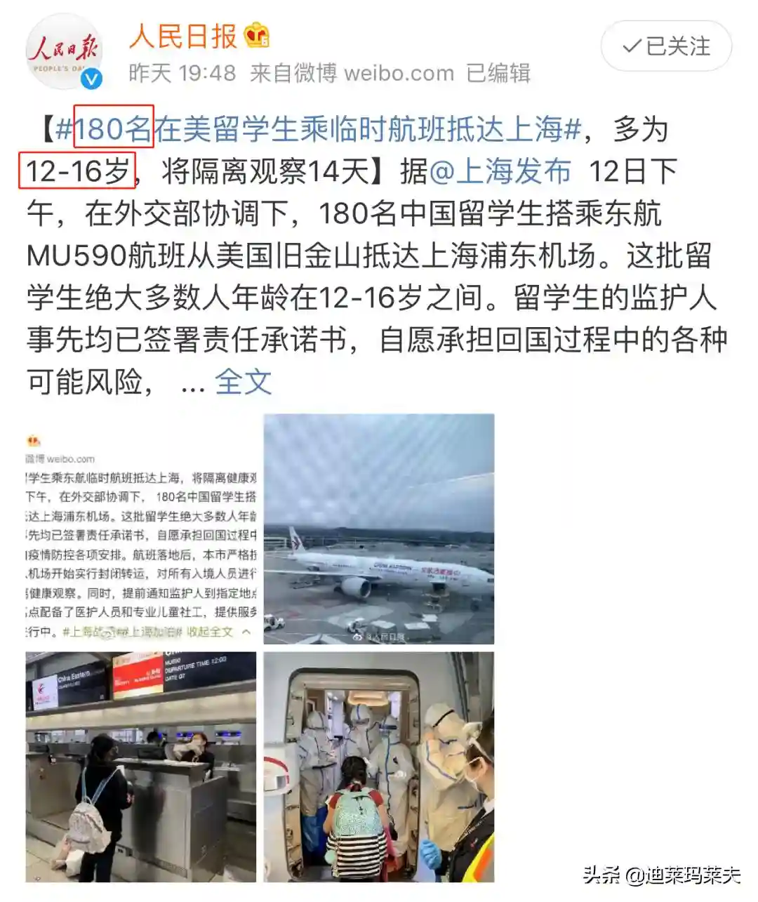 幸运的是,祖国安排的第二批从美国飞往上海的留学生包机,已经成功将180名买不到机票,同时缺少自我保护能力的未成年留学生接回了家。