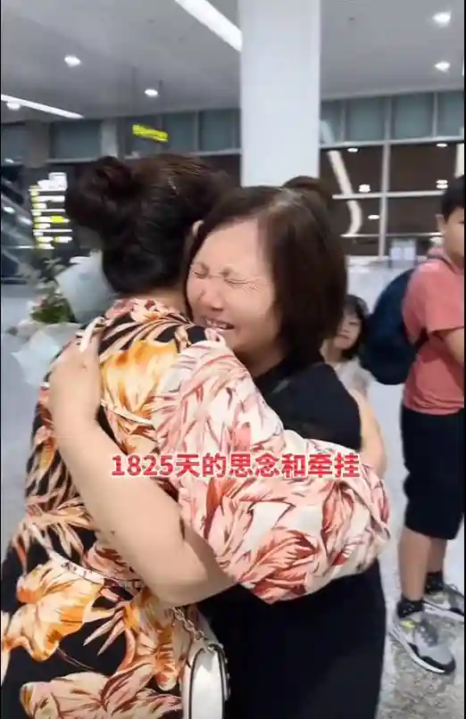 丽姐的妈妈、妹妹和小外甥女在机场等了7个多小时,终于接到了远道归来的亲人,重逢的画面十分感人,68岁的丽姐母亲当场落泪。