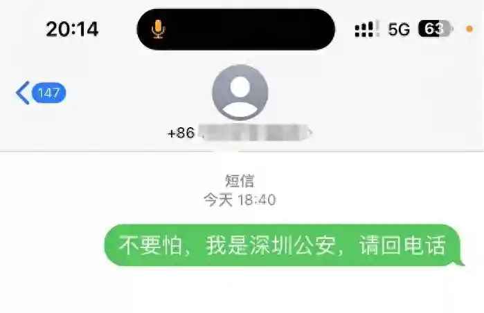 接到求助信后,深圳警方立即联系小志,但电话一直联系不上。随后,深圳警方一边根据小志提供的零星线索联系其家人,一边查证小志是否给骗子转账以开展保护性止付。幸运的是,黄宇发现这场骗局还没到转账阶段。“小志可能觉得自己被‘监视’,就不敢接电话,刚开始也不信任我。”黄宇说,他发送短信后又添加小志微信,终于在北京时间19时许通过了好友验证。